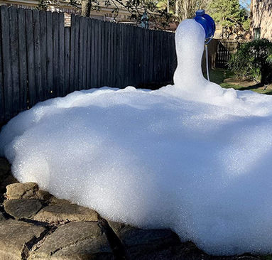 One powder pack mixes with 50 to 100 gallons of water when using a fifty-gallon barrel and a submersible water pump. When using the easy to use and operate in-line mixing device then mix one powder pack in five gallons of water. This five-gallon bucket lasts more than 34 minutes before it needs to be filled with more water and more powder foam. The in-line mixing device works when you have sufficient water pressure pushing the water through the hose. It also requires that the water coming out has enough space to be released. This foam comes with practically no odor at all. As stated on the packets, it’s 100% organic. It stains as much as regular water stains. It’s as slippery as regular water is. It’s as harmful as regular water is.
