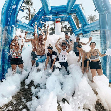 Powder Packs arrive in single serving bags, and they leave less residue. Certified 100% organic; these powder packs simplify the foam party experience. Each powder pack currently lasts from 30 to 60 minutes and you simply drop it into the barrel or 5-gallon bucket and stir. The variation of 30 to 60 minutes means that in some situations you use less foam. When it’s young kids you use less. With 22-year-olds at a birthday party, you use more because they want more, taller, quicker foam.